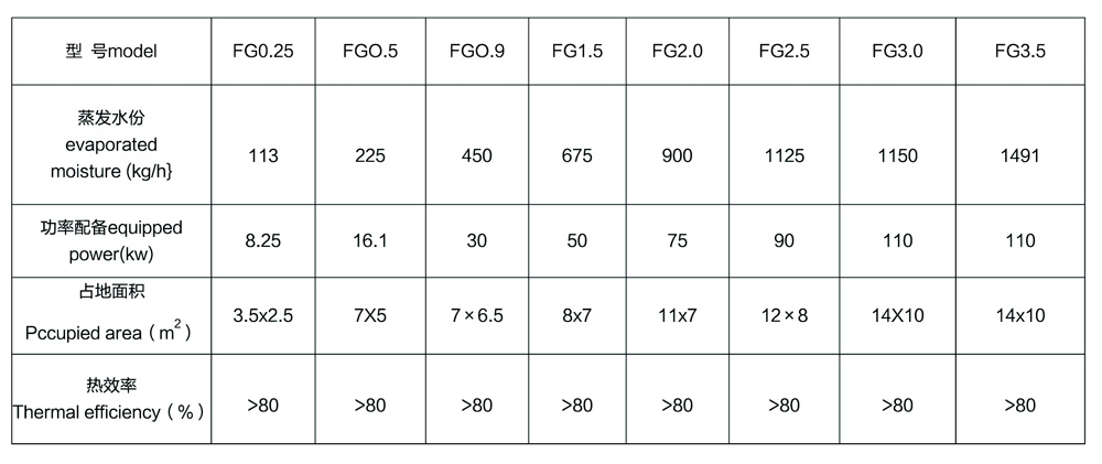 注:表中水份蒸發(fā)量是以玉米淀粉,初水份40%,終水份13.5%,進風溫度20℃時測定