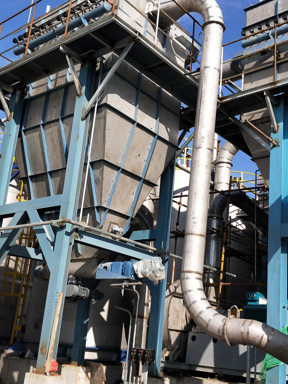 濕物料經輸送機與加熱后的自然空氣同時進入干燥器,二者充分混和,由于熱質交換面積大,從而在很短的時間內達到蒸發(fā)干燥的目的。干燥后的成品從旋風分離器排出,一小部飛粉由旋風除塵器或布袋除塵器得到回收利用。Q型氣流干燥器是負壓操作,物料不經過風機;QG型氣流干燥器是正壓操作;物料經過風機帶有粉碎作用;FG型氣流干燥器是尾氣循環(huán)型;JG型氣流干燥器是強化型氣流干燥器,其集閃蒸干燥與氣流干燥為一體,是我公司根據(jù)用戶要求設計的新型干燥設備。