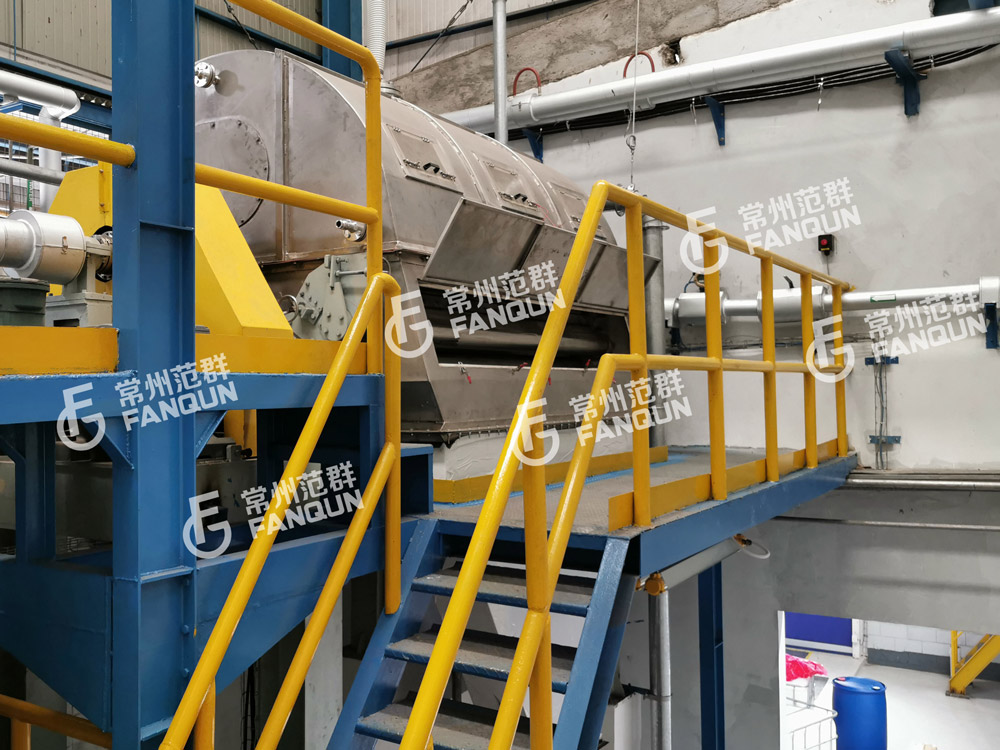 3.干燥時(shí)間短。物料的干燥周期一般只有10-15秒,適合于熱敏性物料。若將滾筒干燥機(jī)設(shè)置在真空器中,則可在減壓條件下運(yùn)行。
