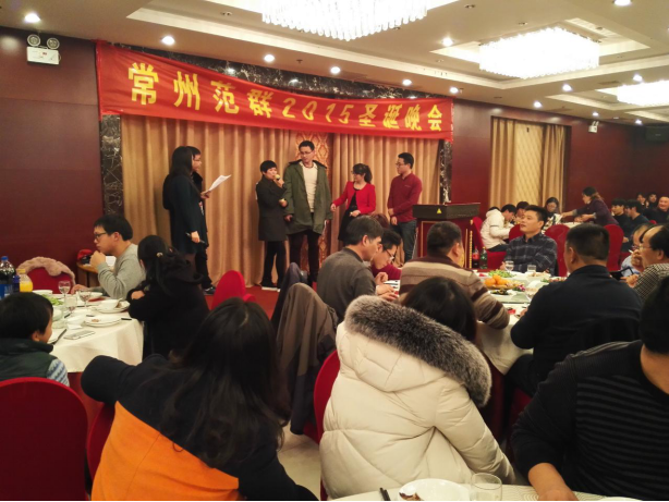 12月24日晚,在星月大酒店二樓大廳舉行常州范群2015年圣誕晚宴,公司全體員工齊聚一堂,歡度圣誕,迎接2016年元旦的到來。晚上5點半,晚宴正式開始,首先董事長范總發(fā)言,介紹了今年公司的整體情況和目前的銷售額完成情況,在今年整個經(jīng)濟環(huán)境因素不利的大背景下,銷售額雖然比去年略有下降,但是這是全體員工共同努力的結(jié)果,2015年我們克服困難、經(jīng)受住了磨礪、豐富了經(jīng)驗。在企業(yè)發(fā)展走向成熟和壯大的過程中也暴露出了我們的一些問題和不足,需要我們不斷修正和改進。2016年,將是我們創(chuàng)造夢想、持續(xù)發(fā)展的關鍵之年,我們將為創(chuàng)造范群的美好未來,凝心聚力、集思廣益、奮力拼搏;以創(chuàng)新發(fā)展為動力,迎難而上、團結(jié)協(xié)作、開創(chuàng)2016年范群公司的新輝煌!為社會的發(fā)展做出應有的貢獻!