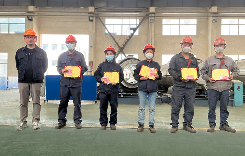 公司總經(jīng)理范琪、工會(huì)主席張濤對(duì)獲得“五一車間勞動(dòng)模范”榮譽(yù)稱號(hào)的勞模先進(jìn)們進(jìn)行頒獎(jiǎng)表彰。