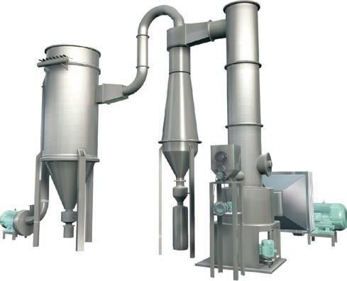 1、旋轉(zhuǎn)閃蒸干燥機采用高速熱氣流切線方向進入筒體,由于氣流在筒內(nèi)的螺旋運動,降低顆粒周圍的介質(zhì)溫度,同時增加了介質(zhì)流速和溫度,這就大大地提高了外擴散的速度。